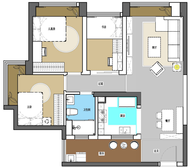 設(shè)計(jì)說明:此案為94平米小三房家居裝修設(shè)計(jì),戶型方正,相對通透,客餐廳相對獨(dú)立,動靜區(qū)域劃分清晰。不足的是入戶門廳鞋柜需要安置,大門直沖客廳。設(shè)計(jì)風(fēng)格為時(shí)尚北歐,淺色調(diào)的搭配讓整個(gè)空間不顯擁擠、沉悶??ㄗc裝飾柜一體化設(shè)計(jì),空間更顯整體性、連貫性;臥室利用飄窗設(shè)計(jì)的儲物柜以及梳妝臺大大地提高了利用率和實(shí)用性;干濕分離的衛(wèi)生間設(shè)計(jì),讓日常使用更加舒適方便,人性化。加上搭配鮮艷的軟裝,讓整個(gè)設(shè)計(jì)眼前一亮。