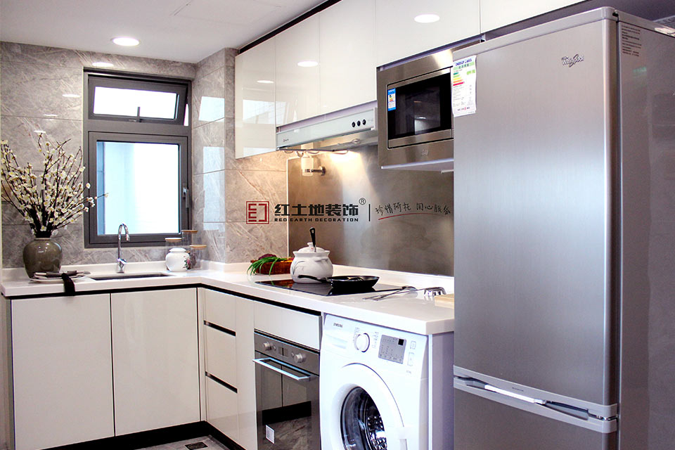 走心的廚房L型臺(tái)面設(shè)計(jì),烤箱、消毒柜、洗衣機(jī)、冰箱等一體化。整體智能家電,使用時(shí)更加省心。小空間最大化利用,帶來(lái)大戶型的視覺(jué)享受!