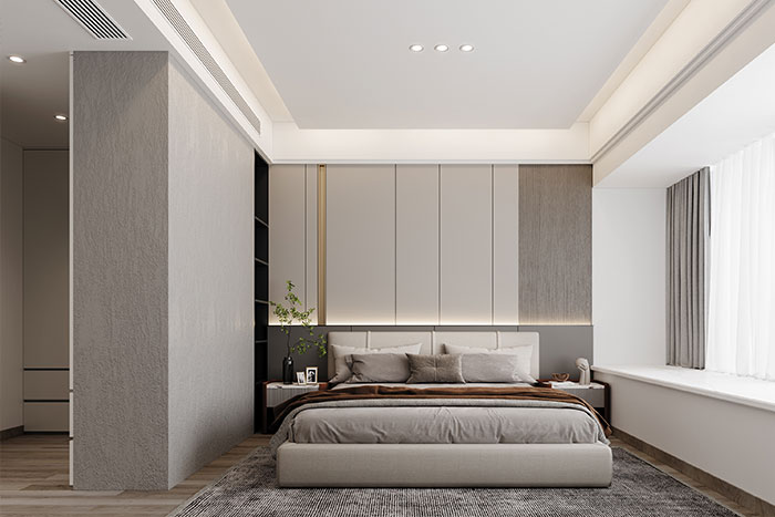 書(shū)房最令人矚目的地方,是一整面深木色書(shū)柜,實(shí)用又美觀;臥室風(fēng)格延續(xù)客廳,并且不浪費(fèi)陽(yáng)臺(tái)飄窗空間,在這度過(guò)美好的一天。