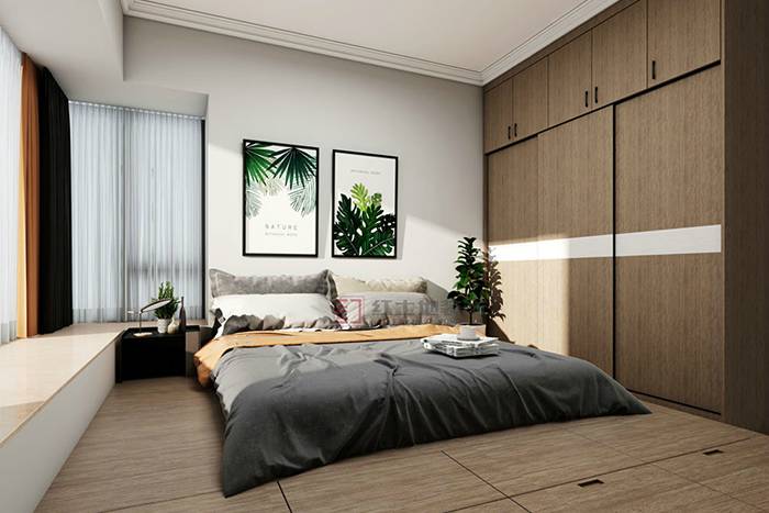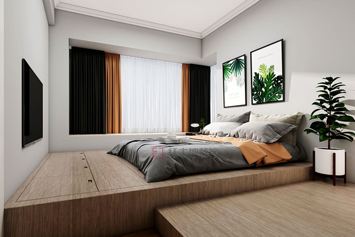 設(shè)計師巧用自然光營造家居舒適度,清晨大面積的陽光灑落,帶出光影層次,撲面而來的幸福感??臻g規(guī)劃實用合理,臥室榻榻米與嵌入式儲物柜經(jīng)典搭配,保證業(yè)主日常收納需求。